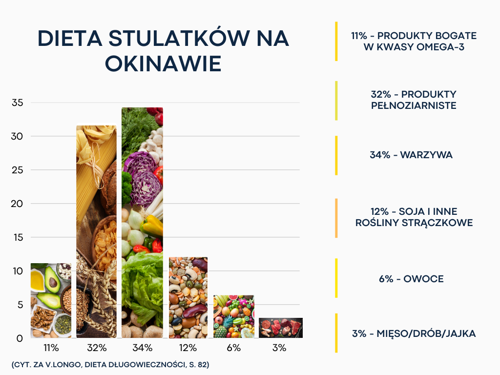 Przykładowo na Okinawie typowa dieta stulatków składa się z: