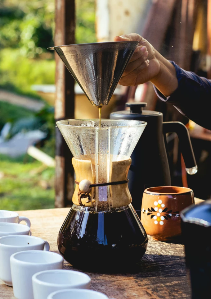 Kawa filtrowana: przez papierowy filtr (np. przelew, drip, chemex, aeropress z filtrem papierowym).