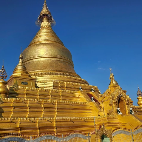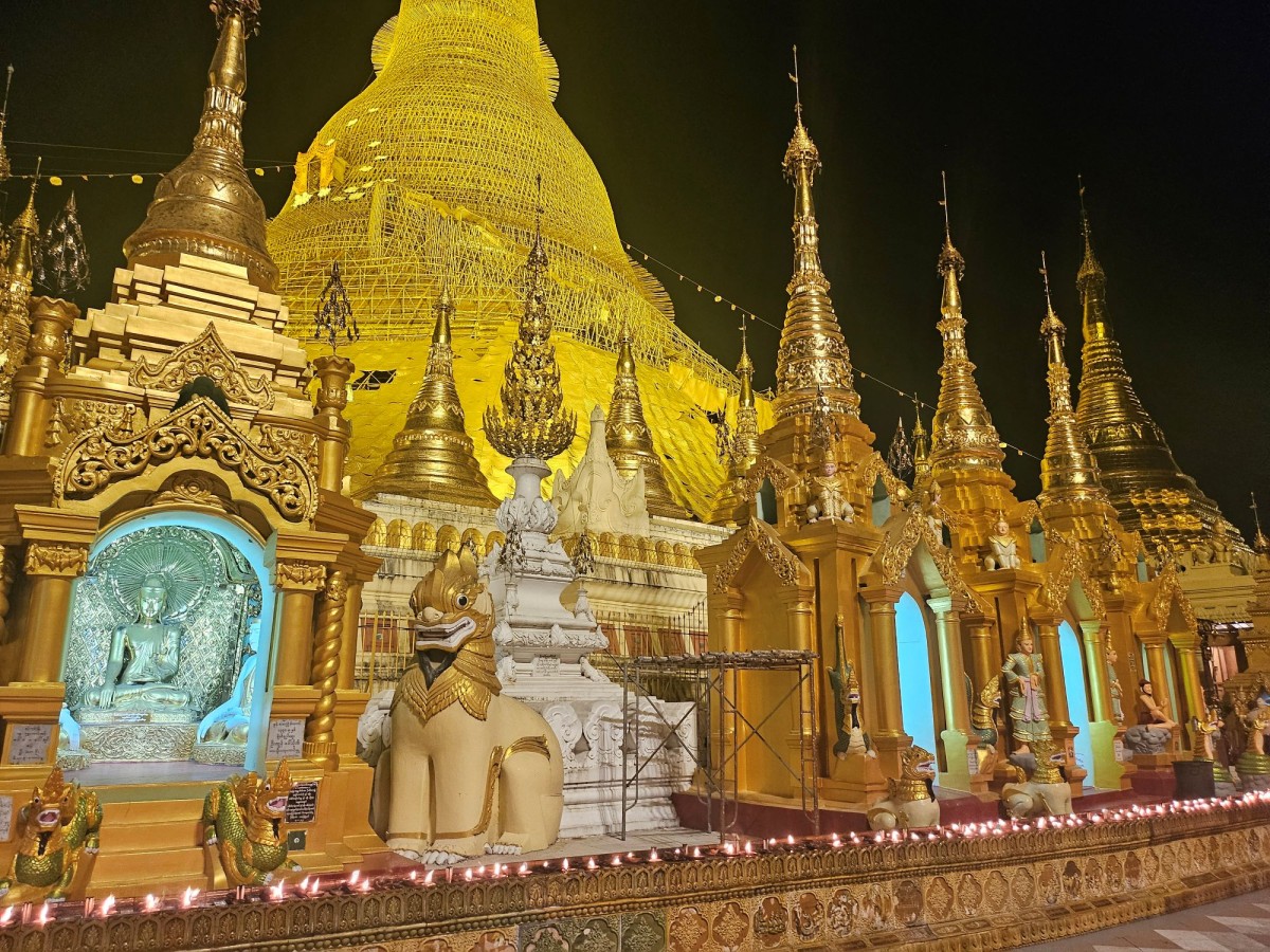 Naszą przygodę rozpoczęliśmy od przylotu do Rangun (Yangon), jeszcze nie tak dawno stolicy Birmy. Zobaczyliśmy mistyczną pagodę Shwedagon. Złota stupa jest sercem Birmy. Przyjmuje się, że pagoda ma 2500 lat, a centralna stupa jest otoczona dziesiątkami misternie zdobionych budynków i o różnym statusie. Shwedagon („złota pagoda z miasta Dagon”) to najcenniejszy obiekt w sferze religii buddyjskiej, ponieważ zawiera w sobie relikwie Buddy (8 włosów Buddy Gautama) oraz w wymiarze materialnym, ze względu na przepych i ilość złota oraz kamieni szlachetnych użytych do budowy tej pagody.