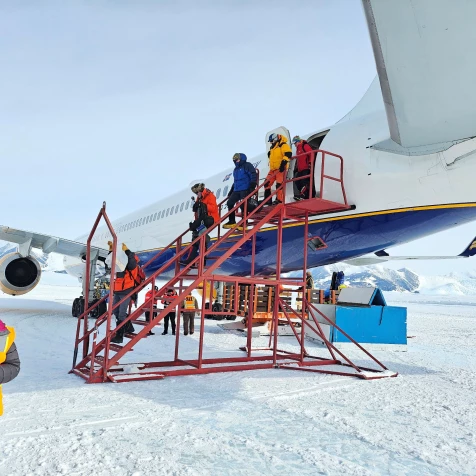 Podróż nie jest już tak ekstremalna jak kiedyś. Obecnie na Antarktydę lata się normalnym Boeingiem. Dawniej latało się Iliuszynem, który dziś jest wykorzystywany tylko jako samolot transportowy. Loty organizują islandzkie linie lotnicze - prawdopodobnie ze względu na doświadczenie w ekstremalnych warunkach. W samolocie tylko część miejsc jest zajęta, reszta to zaopatrzenie, w tym śpiwory na wypadek awaryjnego lądowania.