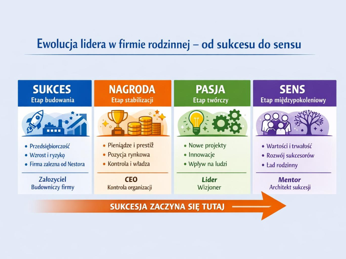 Dlatego sukcesja nie zaczyna się od dokumentów. Nie zaczyna się od fundacji rodzinnej, umów czy struktur. Zaczyna się od jednego pytania: czy Nestor jest gotowy przejść z etapu sukcesu do etapu sensu?